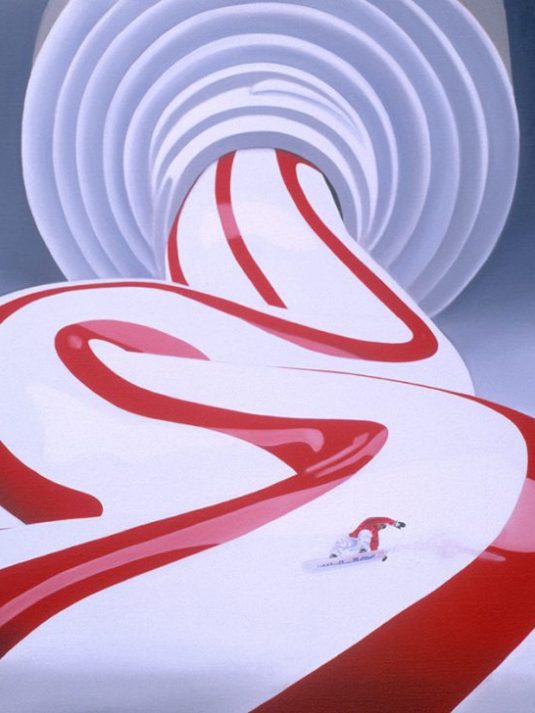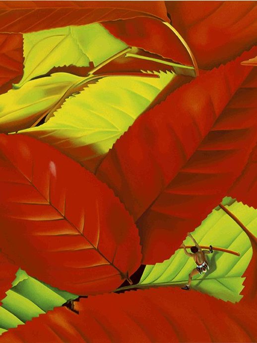 “I’m not a very good photographer, but I like photography. At first, I would paint the pictures I would have liked to take and would often add a small detail – a funny surreal touch. The recurring figure of the climber is also a way of saying: ‘Go ahead, continue, hang on!”
