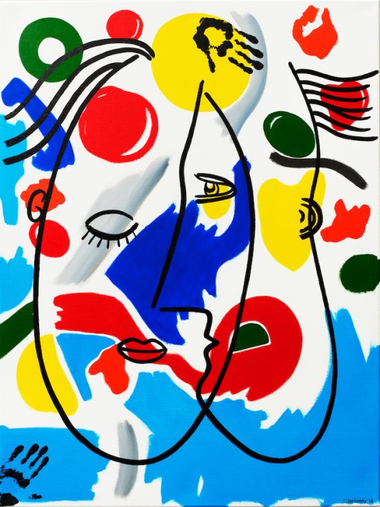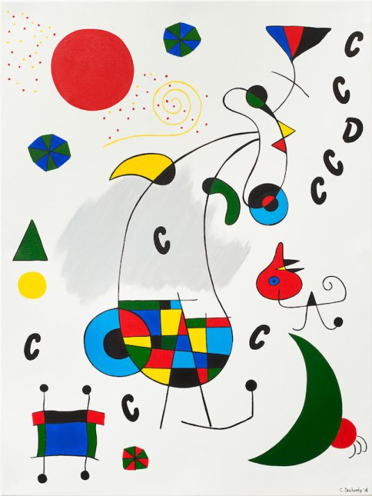 - 2000 : Thanks to her success, Caroline opens a larger art gallery as she continues painting and creating. Her work expands internationally with exhibitions in London, Milan and Holland. It is during this time that she discovers the painting on Plexiglas technique. From a hyperrealist style, her art evolves to a form of « refreshed Pop Art », incorporating a staging game by combining canvas and Plexiglas.