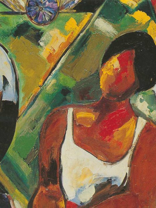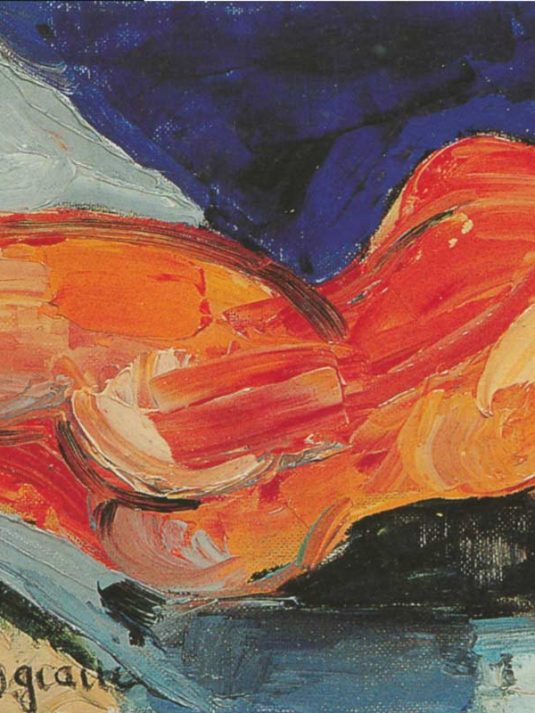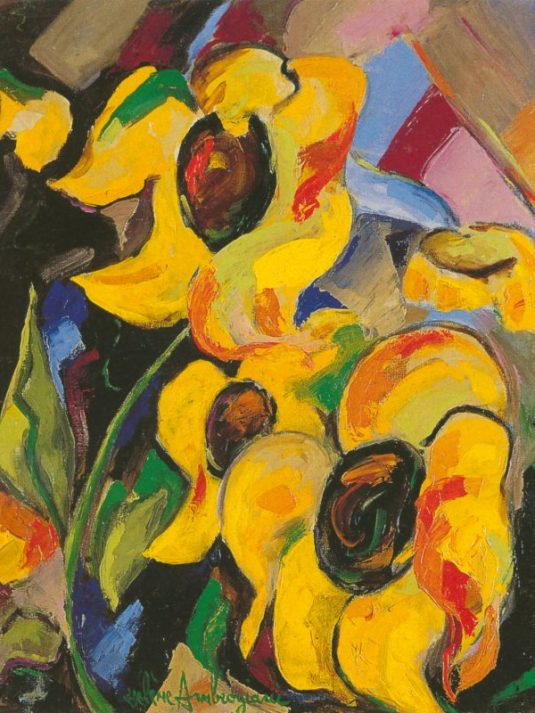 Daughter of Pascal, niece of Pierre and Toussaint, she is a full-fledged AMBROGIANI, and, if her physical appearance borrows nothing from virility, the vigor of her drawing, the power of her palette and the impetus of her flattened ribbons of black have nothing to envy her mentors.